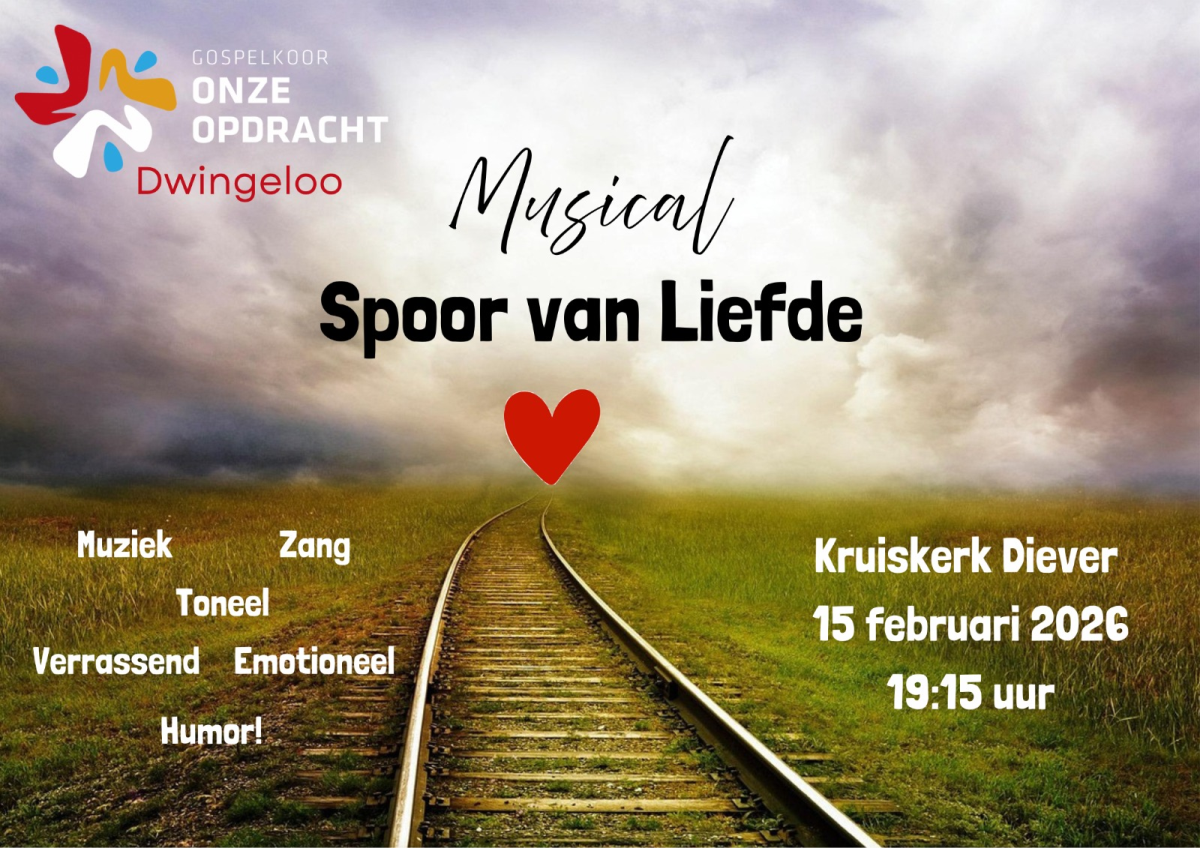 Zondagavond 15 februari zal in de Kruiskerk te Diever de musical ‘Spoor van liefde’ worden opgevoerd door gospelkoor 'Onze Opdracht' uit Dwingeloo.