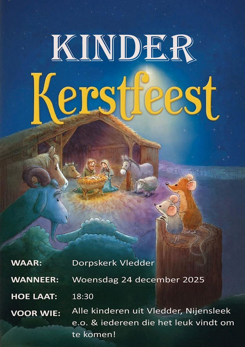 Op kerstavond, om half zeven, zijn alle kinderen uit Vledder, Nijensleek en omliggende dorpen welkom bij het Kerstfeest voor kinderen.